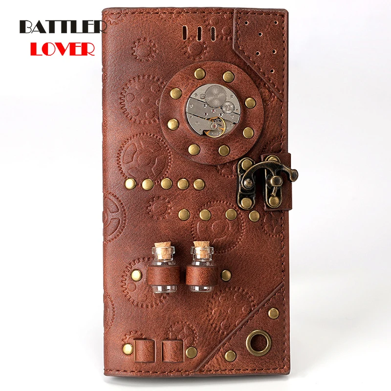 Steampunk Female Long Printed Gear Movement Wallet Leather Womens Buckle Rivet Coins Purse European Card Holder Mobile Phone Bag USD 32.8 / piece /lot 1