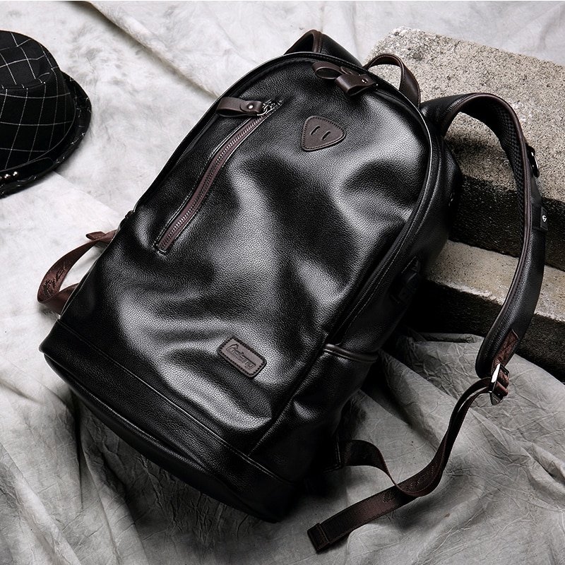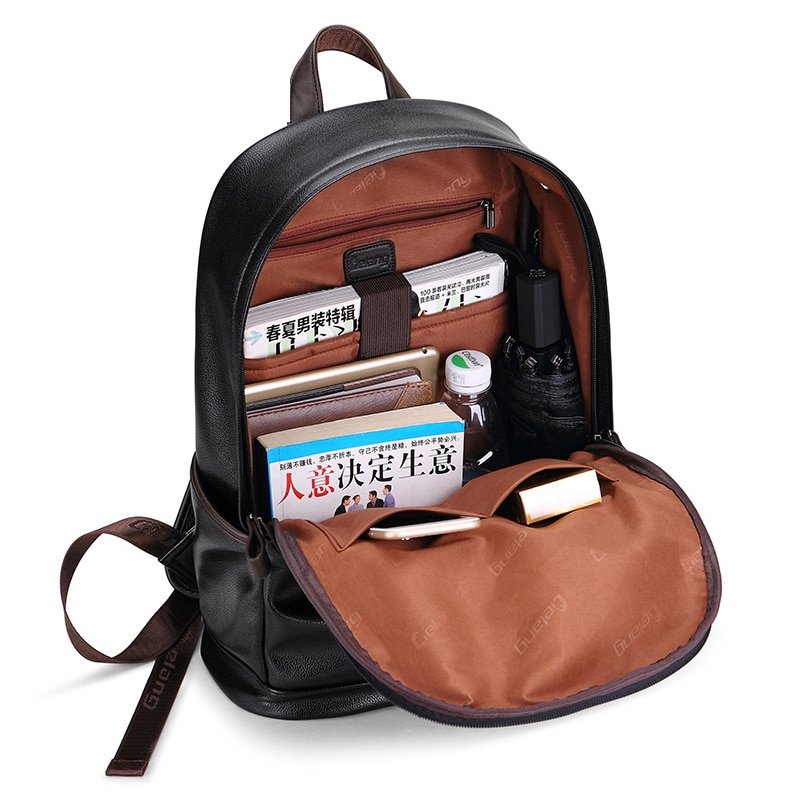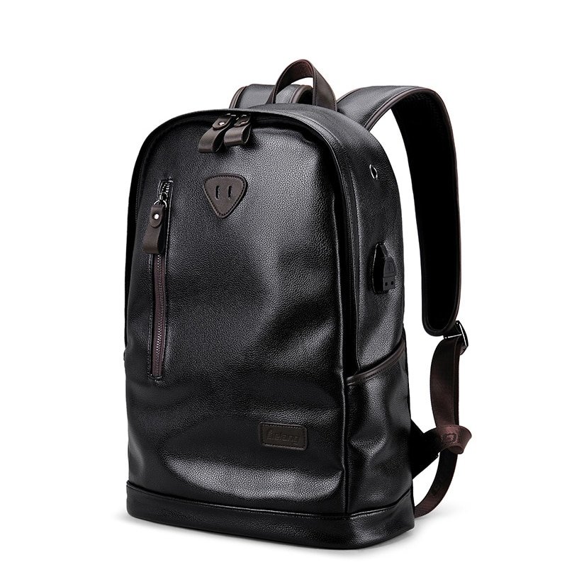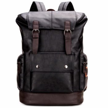 Men’s Waterproof Big Capacity Black Leather Backpack