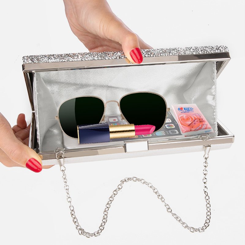 Lovely. very high quality and large enough to accommodate a phone, money, some makeup etc. comes with two lengths of chain which can be attached to the inside of the bag. I bought one for each of my bridesmaids and I know they will be very pleased with them.