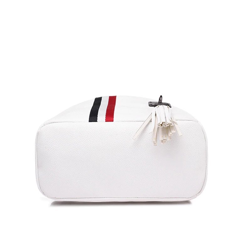 Very stylish bag from Popular New Bags Store.This bag can be worn as a backpack or just a shoulder bag,it comes in beautiful 9 colours and was very hard to chose which one to but as all of them look super cool.The bag made from pu,average thickness,has few coloured stripes across,which gives distinctive look.The size is around 30cm x 27cm x 12cm.On outside one vertical zip pocket with cute tassels,at the side 2 small pockets.The store put cute bear charm that you can attach to your bag.On inside is polyester lining with 1 zip pocket and 2 open smaller pockets.You can easily feet your ipad,few copies,purse,phone,keys.You can carry this bag different way- as a backpack,just by the middle handle or you can attach an extra strap and carry over the shoulder.The straps at the back are adjustable.The quality is superb,straight stitching,no smell,bright colour and great price.Came in dust bag and plastic bag in 3 weeks to Ireland.